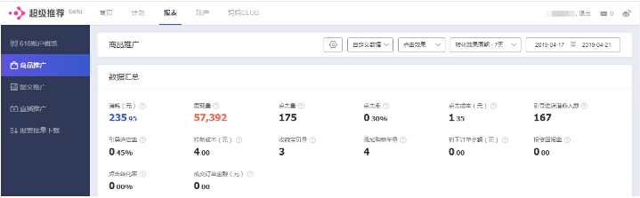 上图是刚建计划的数据,超级推荐也是一个周期性工具,前几天的拉新成本达到了4元,点击成本1.35元,引导进店率仅有0.45%。