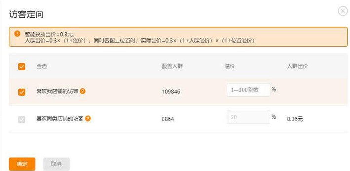 设置好这个计划之后我们还需要再建立一个定向计划对客户进行回流式的召回,也就是上面说的那个定向投放喜欢自己店铺的人群,对当时没有成交的客户再次进行投放,从而达成成交的目的。这样做的好处是通过不断的出现在消费者眼前从而增加消费者的购买欲望,而且这样的方式也很节省费用,因为定向投放喜欢自己店铺的人群只需要很低的出价就可以了,并且点击花费也很低。