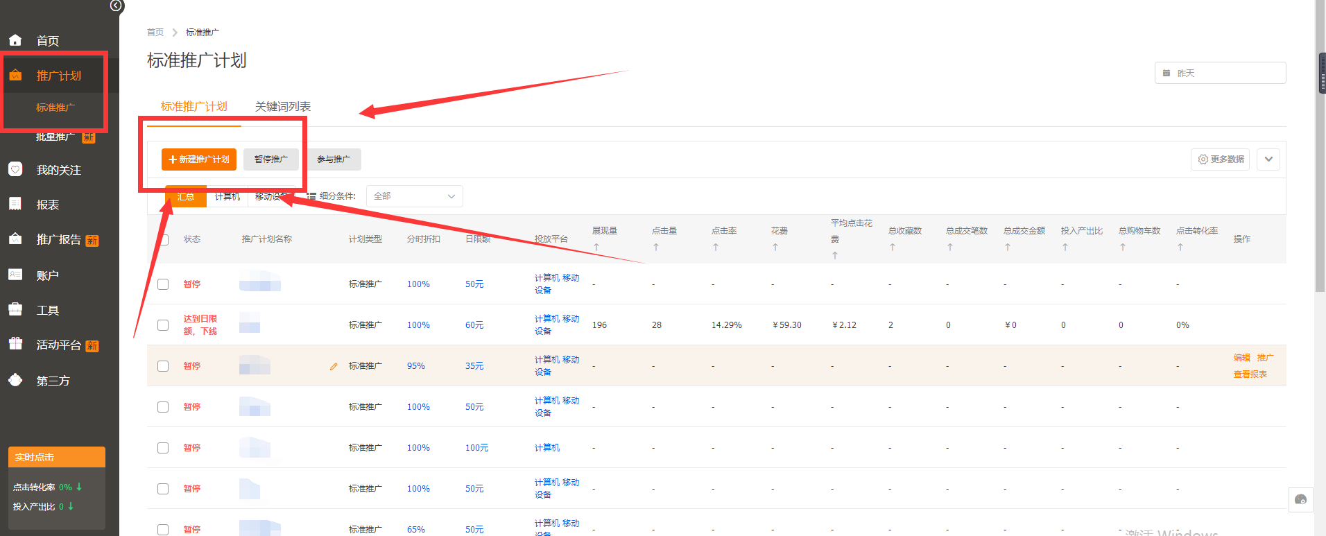 ①新建一个推广计划,选择标准推广